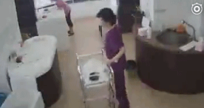 "韩国护理师"推翻婴儿车 摔落新生儿