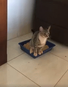 猫咪在猫砂盆里站着拉屎,而且上完后也不埋扭头就走,真奇葩啊!