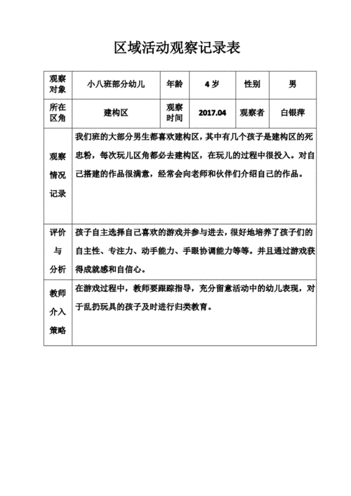 幼儿园区域活动观察记录表吉